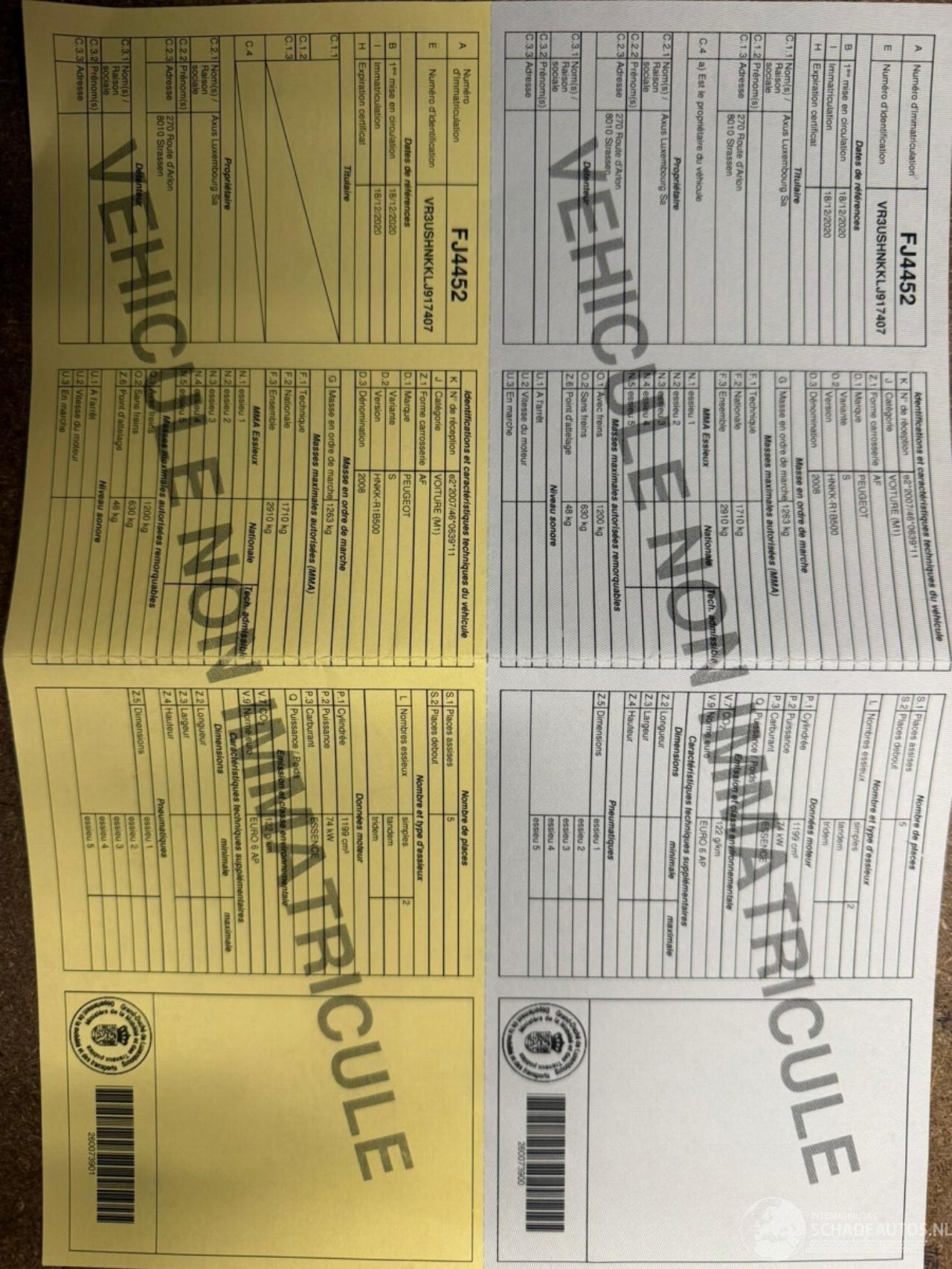 Fahrgestellnummer: VR3USHNKKLJ91****