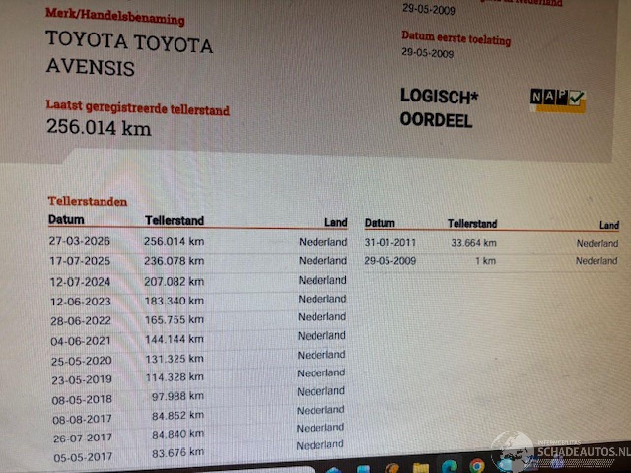 Toyota Avensis met rijdbare plaatschade boeken sleutels compleet APK 17-07-2026 Scherpe prijs
