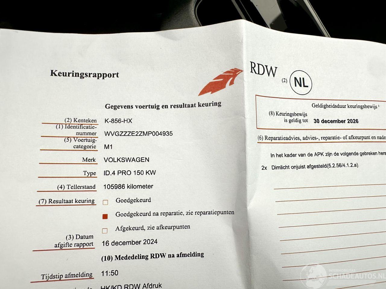Zeer lichte verrijdbare voorschade zie fotos - airbags + gordels ok + recht op wielen - start + loopt + rijdt gewoon op terrein - puur schroefschade (chassis ok) - radiateur lekt - FRONT ASSIST OK - buiten de schade om zeer nette ID.4