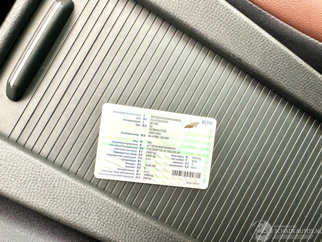 Luxe ID.4 Pro 77kWh First Edition - org NL + 134dkm NAP + boekjes + 2x sleutels op afstandbediening erbij - 2x laadkabels erbij - hoge Actieradius van 501km - INKLAPBARE TREKHAAK - keyless entry + start - led koplampen + dynamische led achterlichten - 20 inch lmv - privacy glass - achteruitrij camera - pdc v+a - zwarte hemel - navi prof - clima + cruise control - ACC - front + line assist - voorruit verwarming - voet + handverwarming - voet + handkoeling - elektr pakket - lederen dashboard - bekleding leer + alcantara + stoelverwarming voor - sfeerverlichting - touchscreen multimedia + apple carplay + 4x usb-c punten + stuurbediening - bleutooth telefoon lader - hoogglans zwart dak + spiegels - wit parelmoer metallic lak - etc etc etc