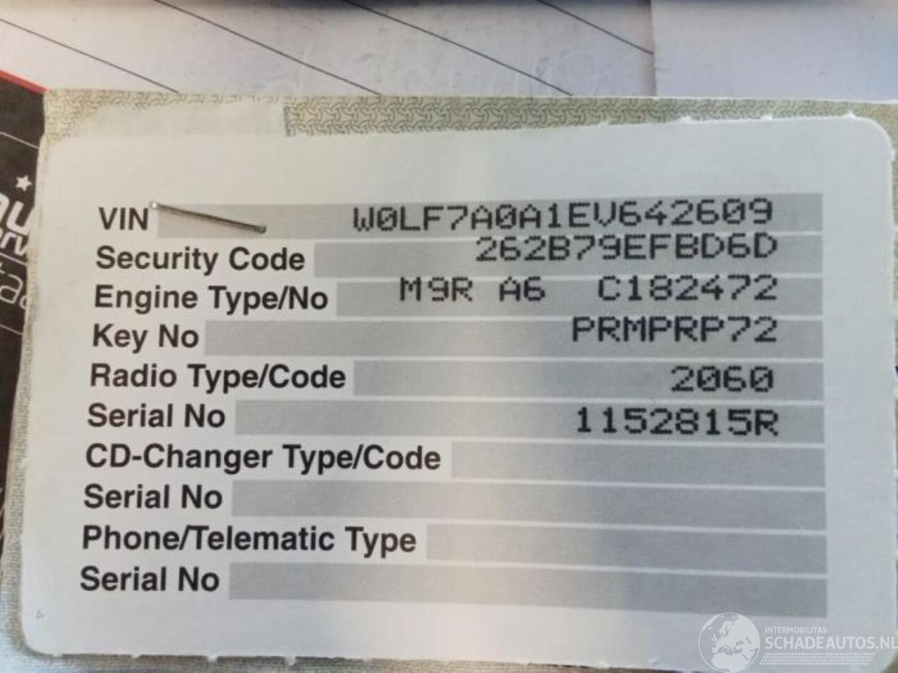 Fahrgestellnummer: W0LF7A0A1EV6*****