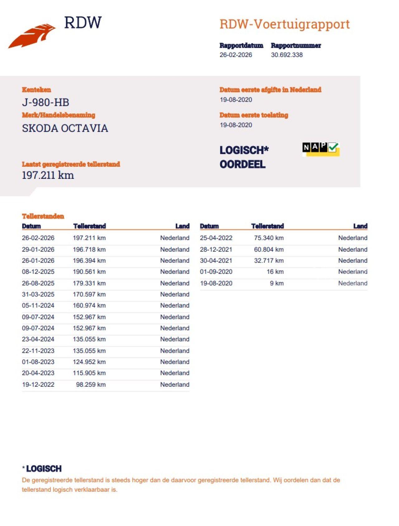 Verificación del kilometraje (NAP)