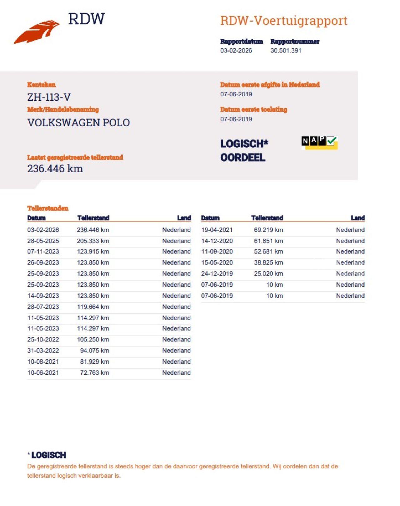 Verificación del kilometraje (NAP)