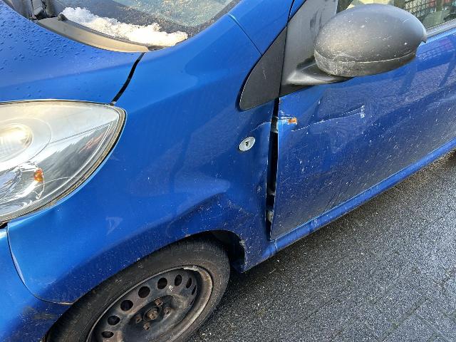Compleet kenteken Nette Citroen C1 met schade aan L voorscherm en L koplamp.