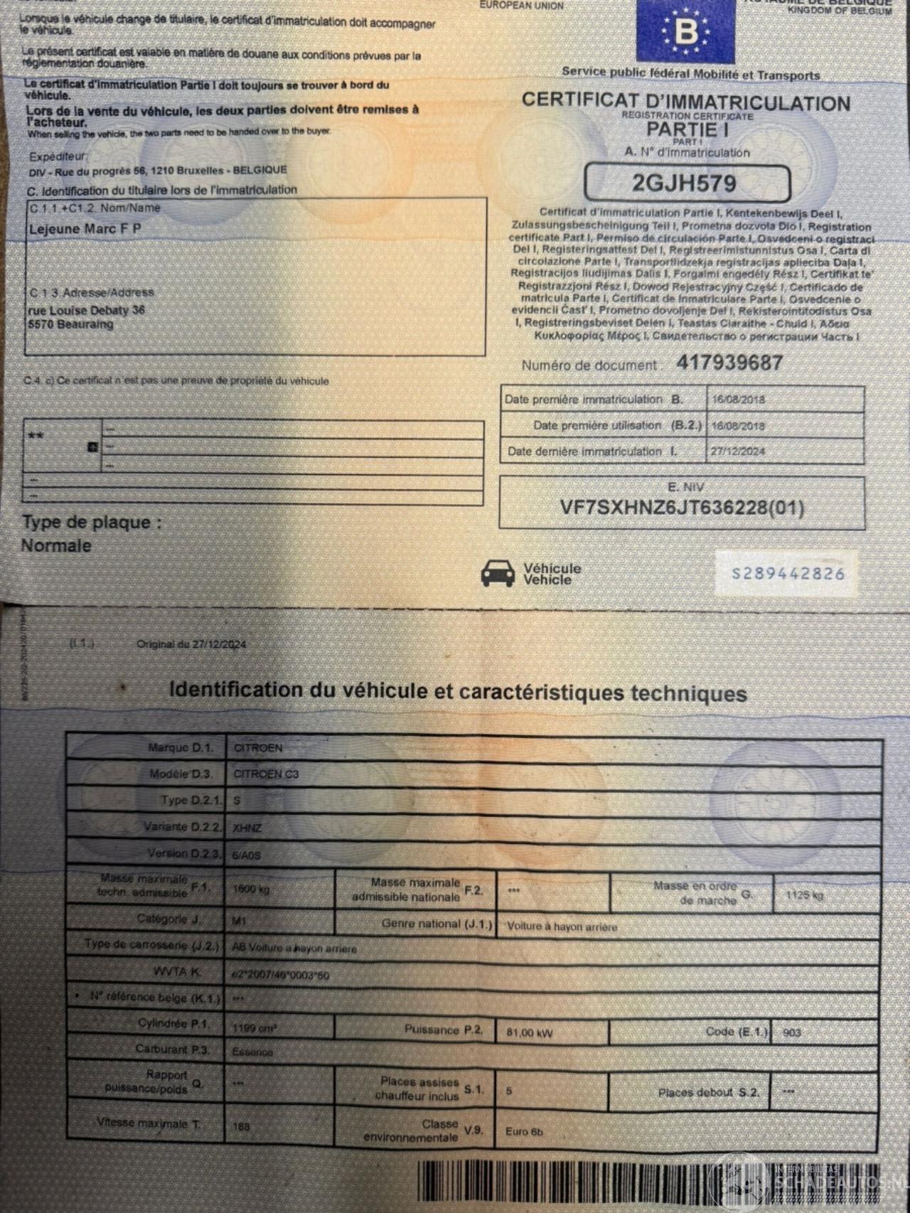 Chassisnummer: VF7SXHNZ6JT63****