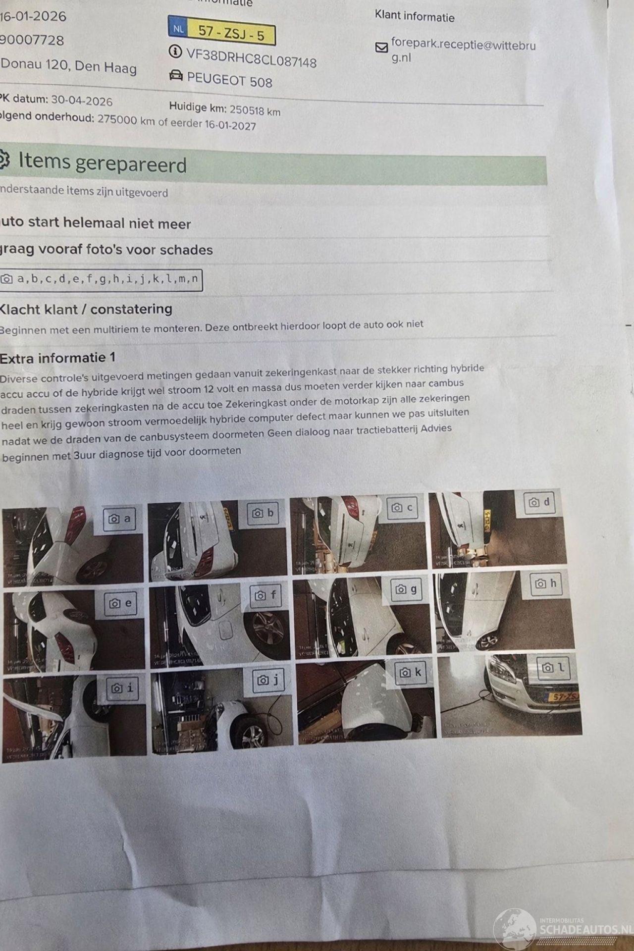 Model: 508 2.0 Hybrid4 16V Sedan 4Dr Elektrisch Diesel 1.997cc 120kW (163pk) 4x4 2010-11/2018-12 (8DRHC) DW10CTED4; RHC