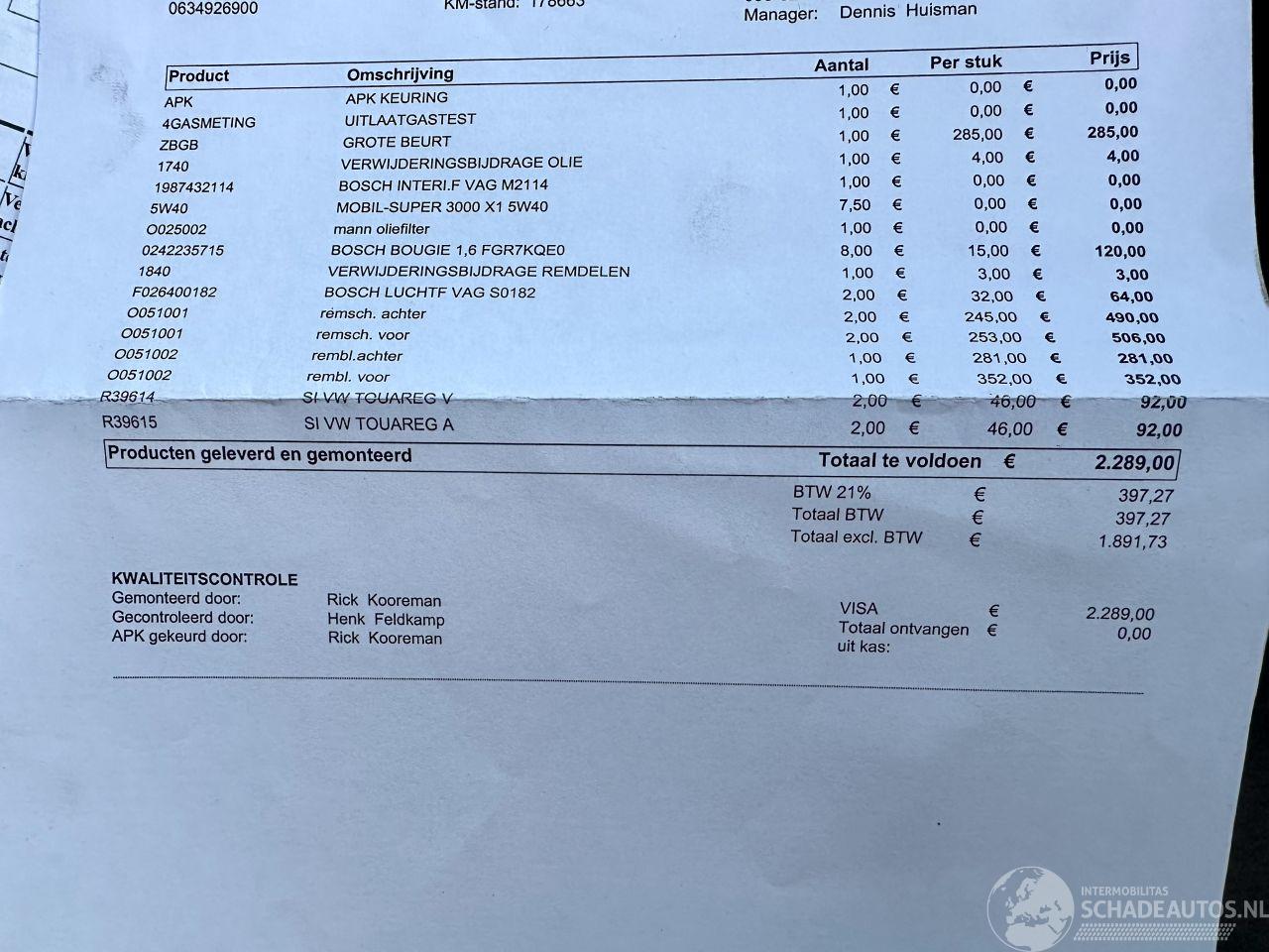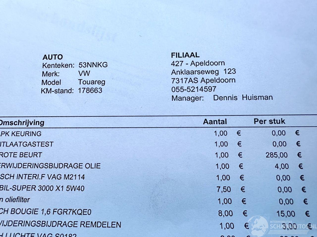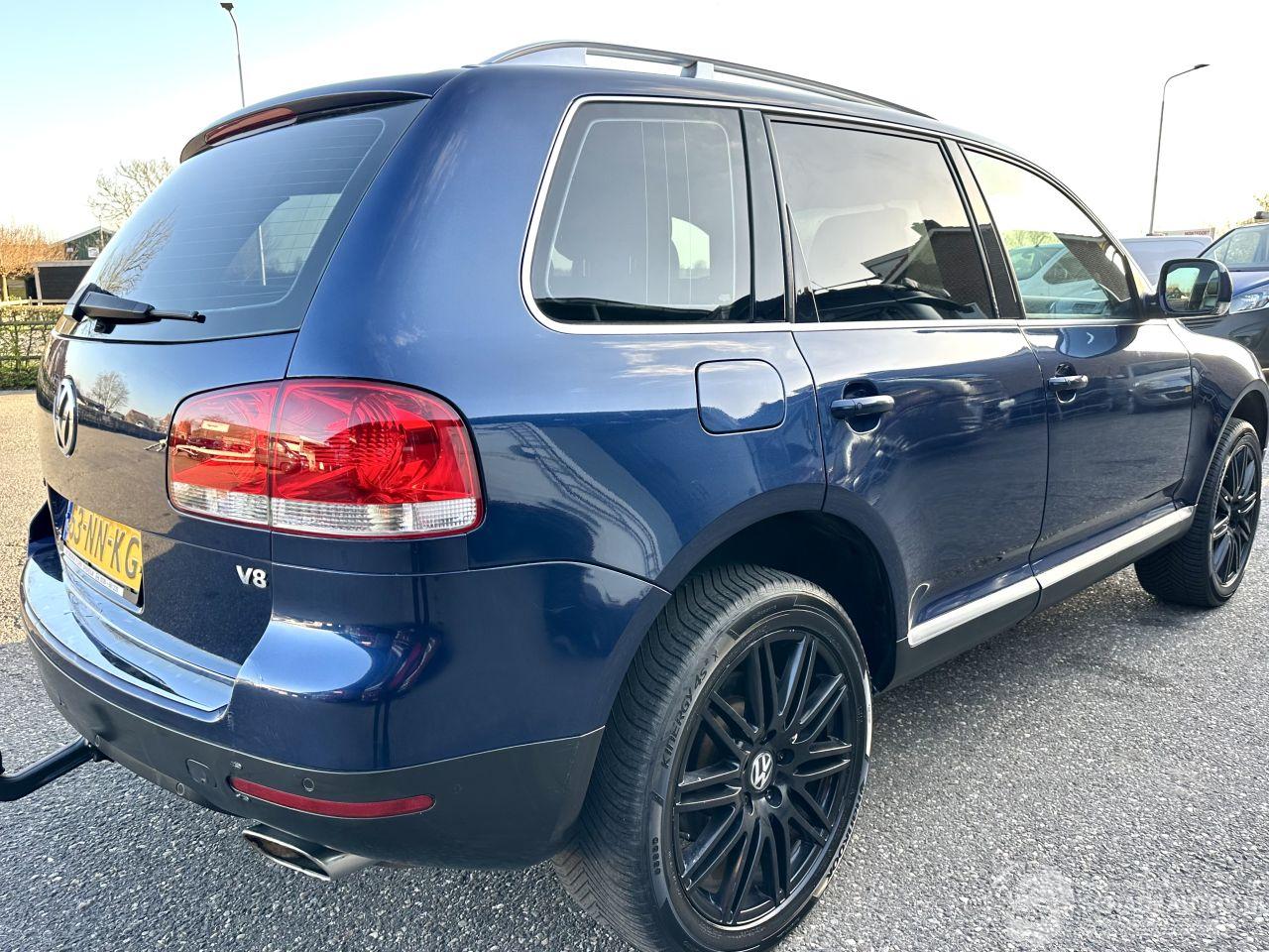 Bomvolle Touareg 4.2 V8 4WD 310pk Automaat Highline - YOUNGTIMER - start + loopt prima (rijdt goed) - 4x4 aandrijving - org NL + NAP + 2x sleutels erbij (op afstandbediening) - elektr schuif/kanteldak - luchtvering (werkt goed) - vol zwart leer (netjes) - 20 inch lmv - trekhaak - xenon verlichting + sproeiers - rollo in portieren - navi - clima + cruise control - elektr pakket - pdc v+a (parkeer sensoren) - metallic lak - memory pakket L+R - vol elektr voorstoelen - elektr stuurverstelling - verwarmde voorstoelen - privacy glass - reservewiel aanwezig - etc etc