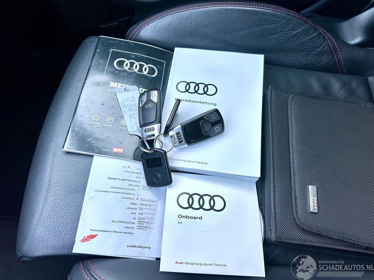 Bomvolle Audi A4 2.0 TFSI 190pk Automaat + F1 MHEV Sport S-line Black Edition - boekjes + sleutels + 2x sleutels + 2x alarmkastjes erbij - 3x S-Line - Nardo Grey - Bang & Olufsen - HEAD UP display - inklapbare trekh - elektr klep - front + line + side assist - zwarte hemel - verlichte instaplijsten - achteruitrij camera - navi prof - bleutooth tel lader - keyless entry + start - privacy glass - sportonderstel - virtual cockpit - gestikt middenconsole + deurpanelen - sportinterieur zwart + rode stiksels - orthopedische + verwarmde voorstoelen - clima + cruise control - licht + regensensor + aut dimmend binnenspiegel - sportstuur + flippers + bediening - alarm - elektr pakket - verwarmde + elektr inklapbare buitenspiegels - aux - usb - start/stop - 19 inch lmv Audi sport - etc etc etc