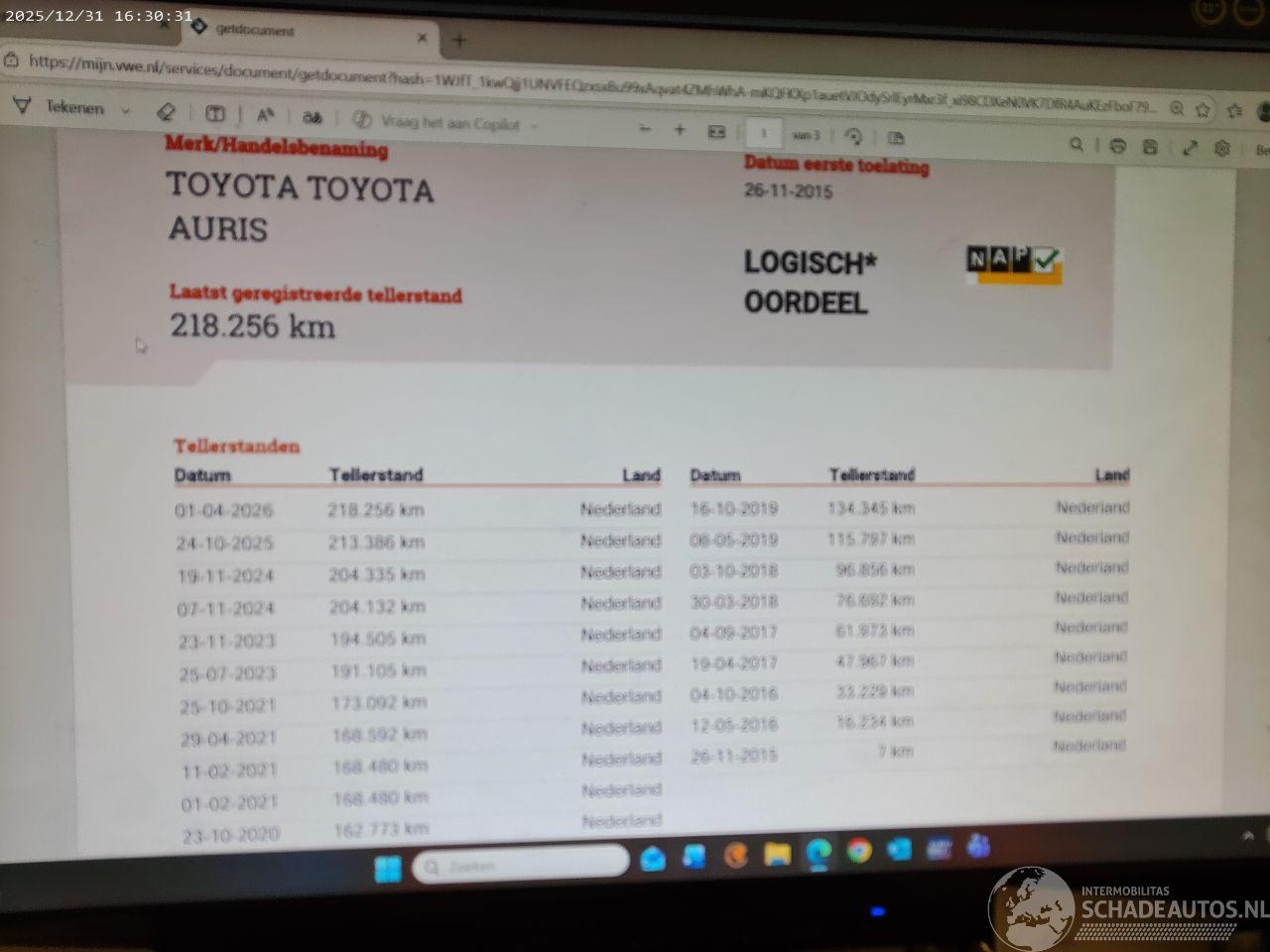 Auris Hybride met rijdbare voorschade boeken sleutels compleet APK 26-11-2026