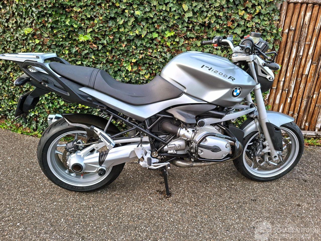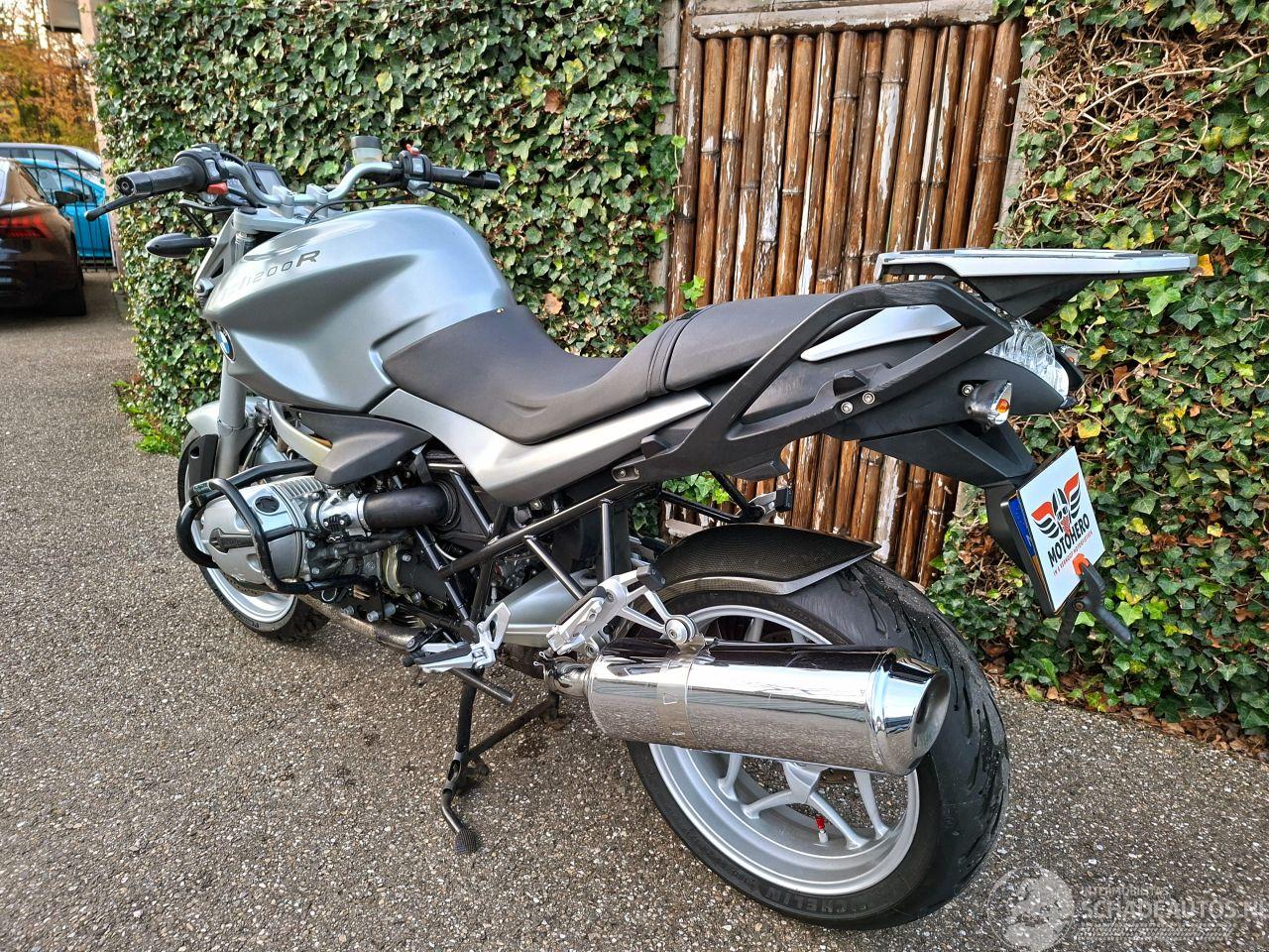 BMW R1200R uit 2007 met de 1170cc boxer-twin in zilvergrijze uitvoering. Voorzien van recent onderhoud zoals een nieuwe brandstofpomp