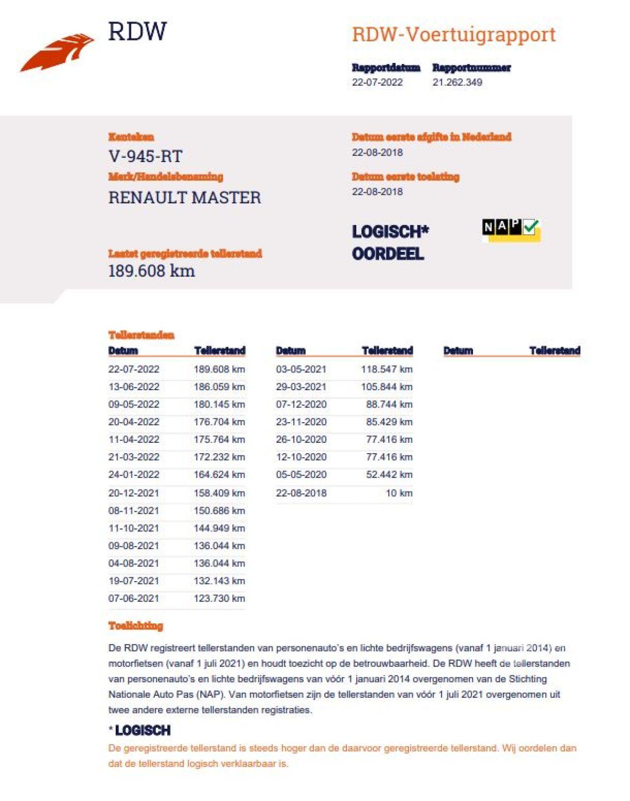 Verificación del kilometraje (NAP)