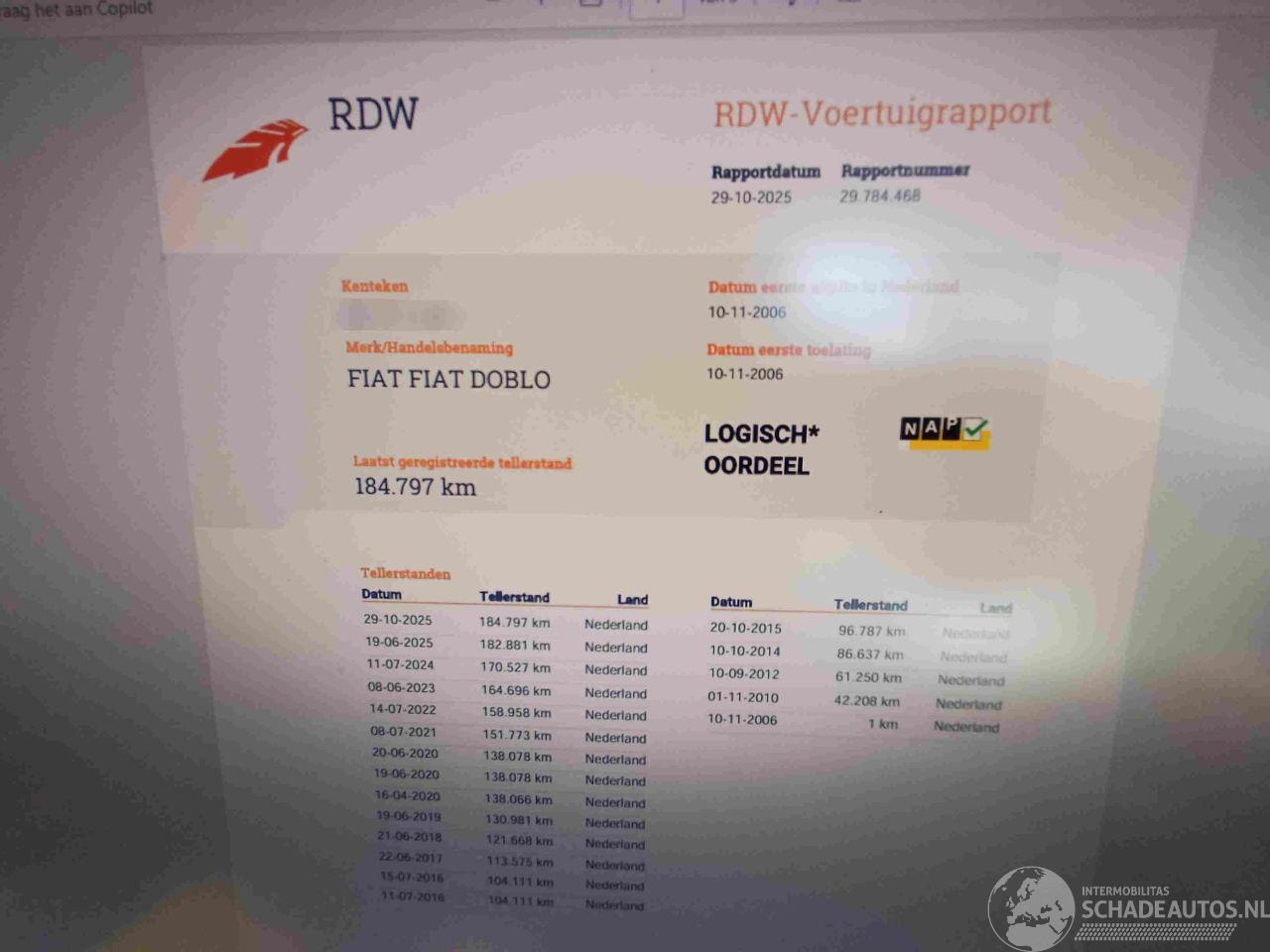 Keurige Doblo met schade aan de linker zijkant. Heeft bij brand gestaan ..diverse delen zijn gesmolten