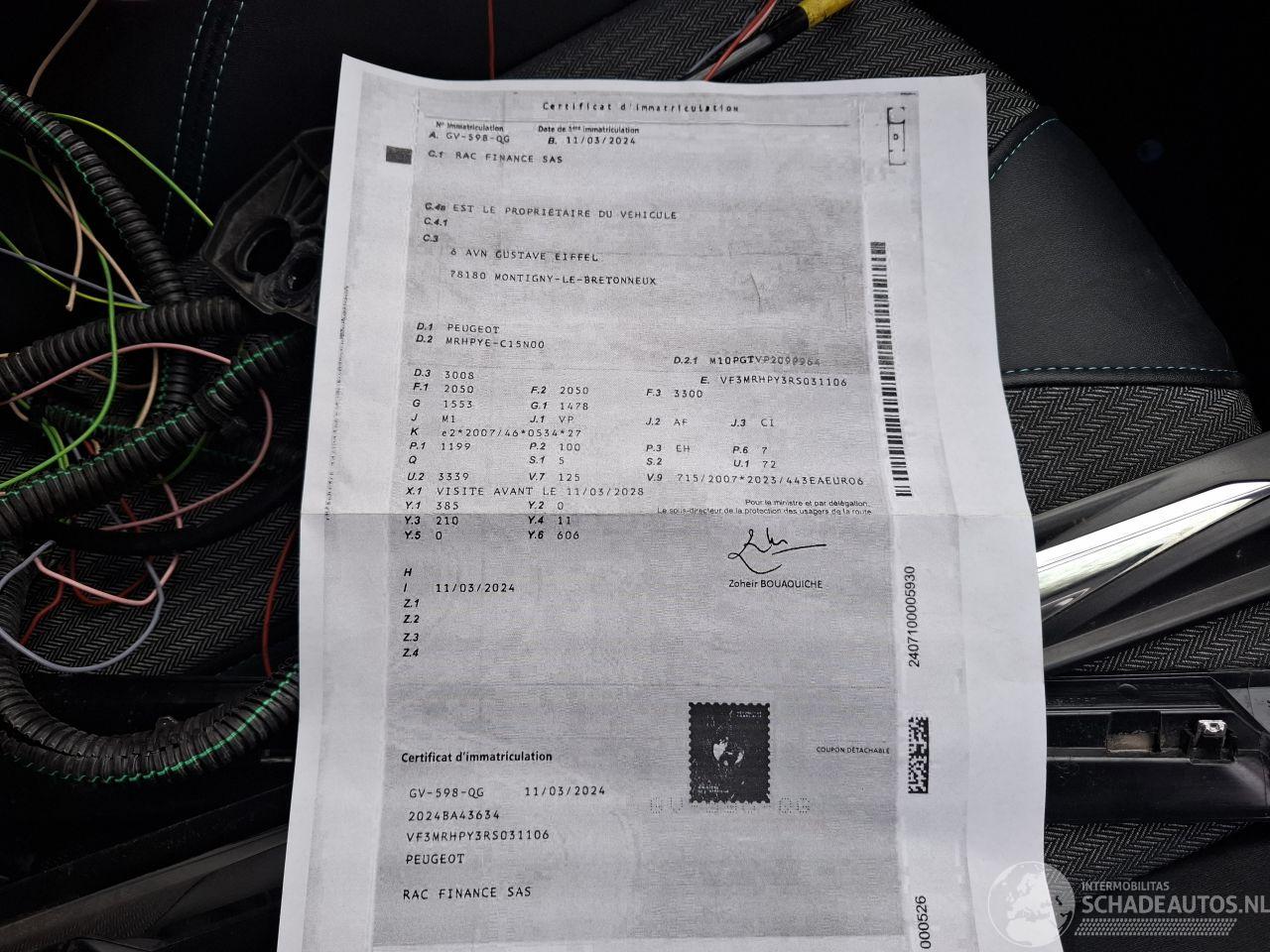Modell: 3008 3008 Hybride 1.2 Automaat ALLURE Airbag Ok Rijdbare Schade 2024 Ex Bpm