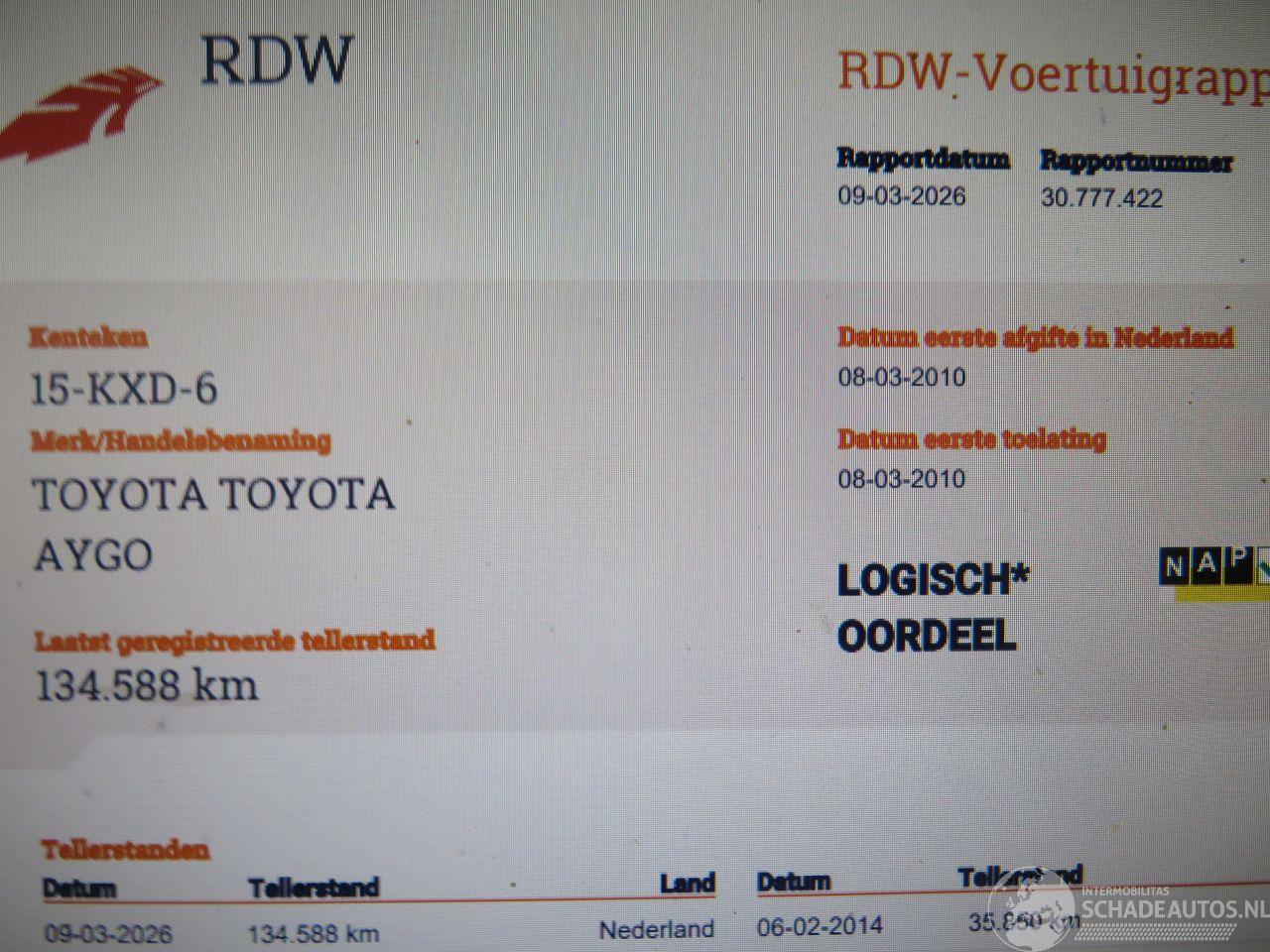 Modell: AYGO 1.0 12v 5Drs 135.000km NAP Airco Dynamic Blue 2010 [ Eerste Eigenaar