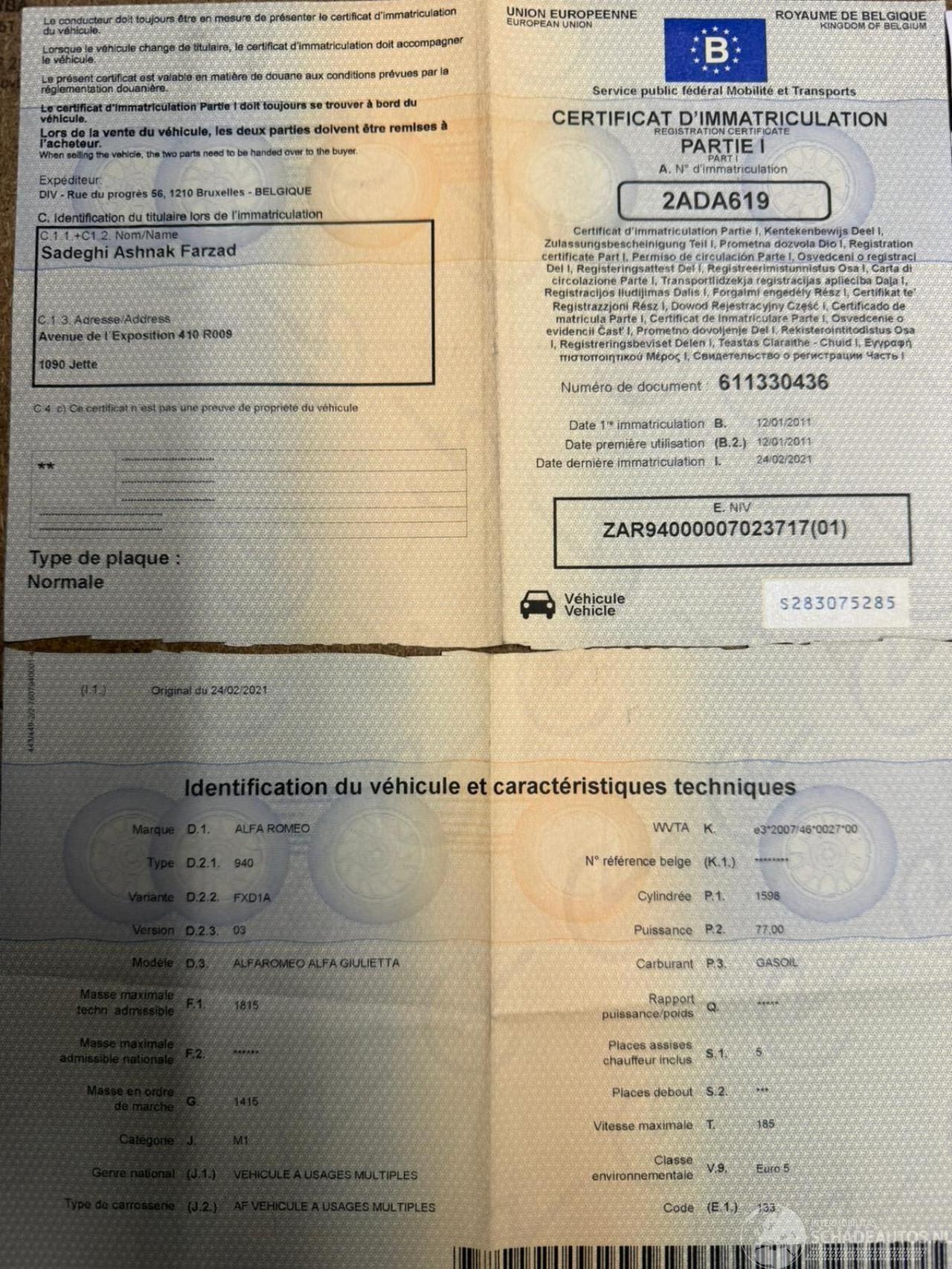 dañado ALFA ROMEO ALFA ROMEO GIULIETTA € 1.900