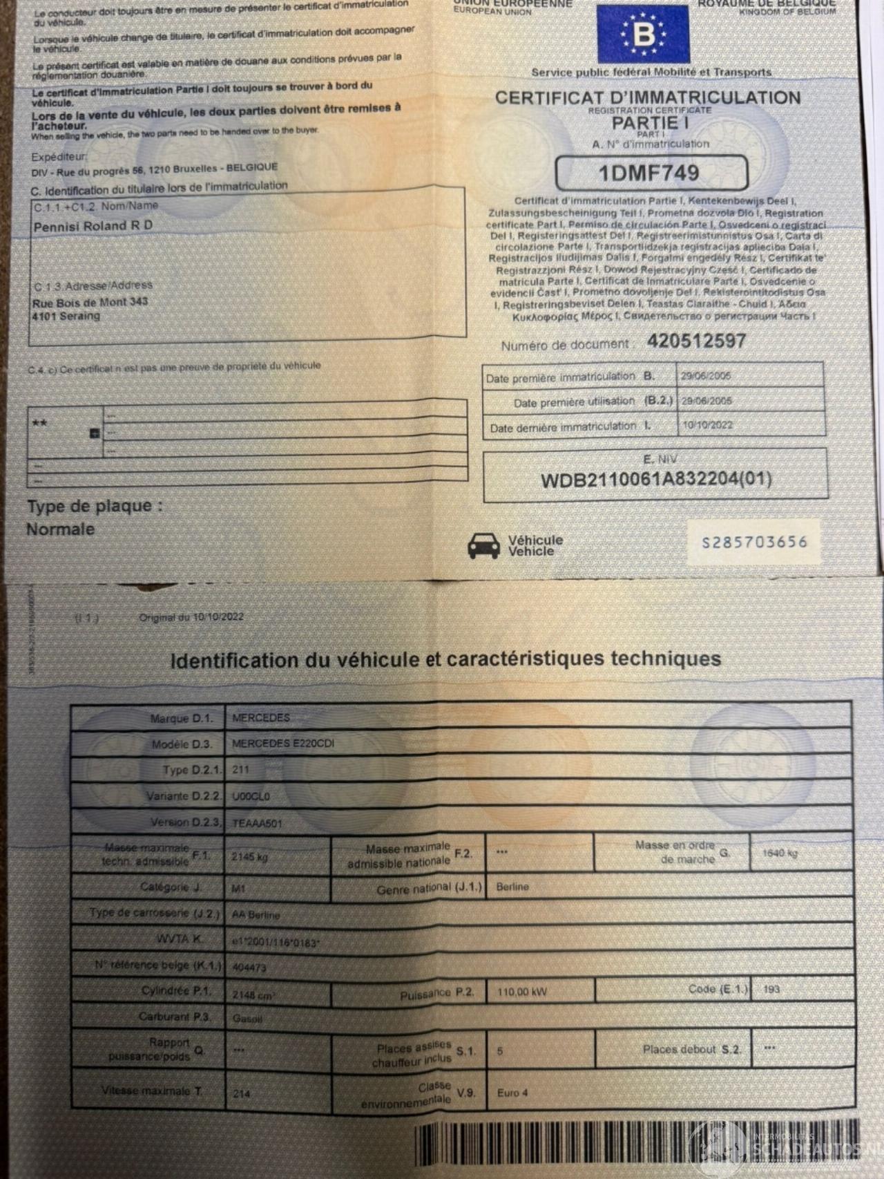 Número de chasis: WDB2110061A83****