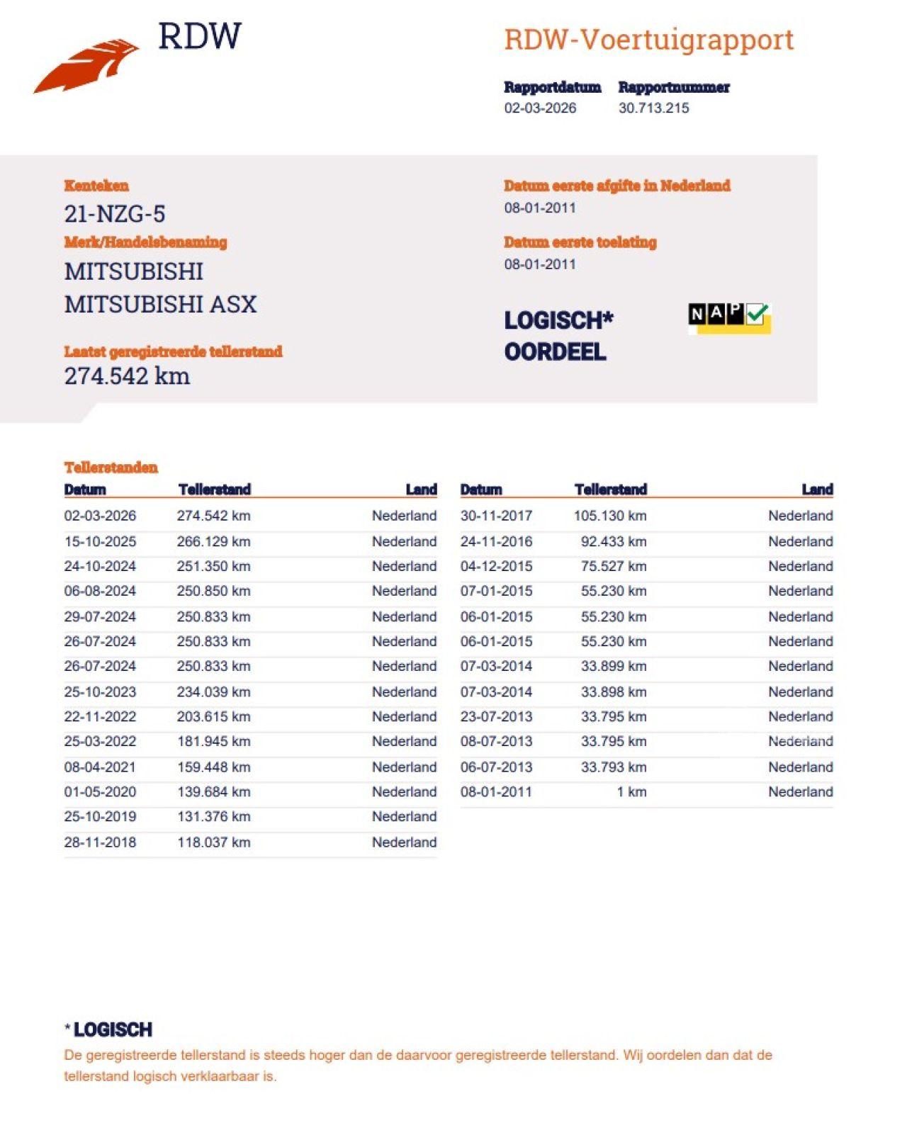 Verificación del kilometraje (NAP)
