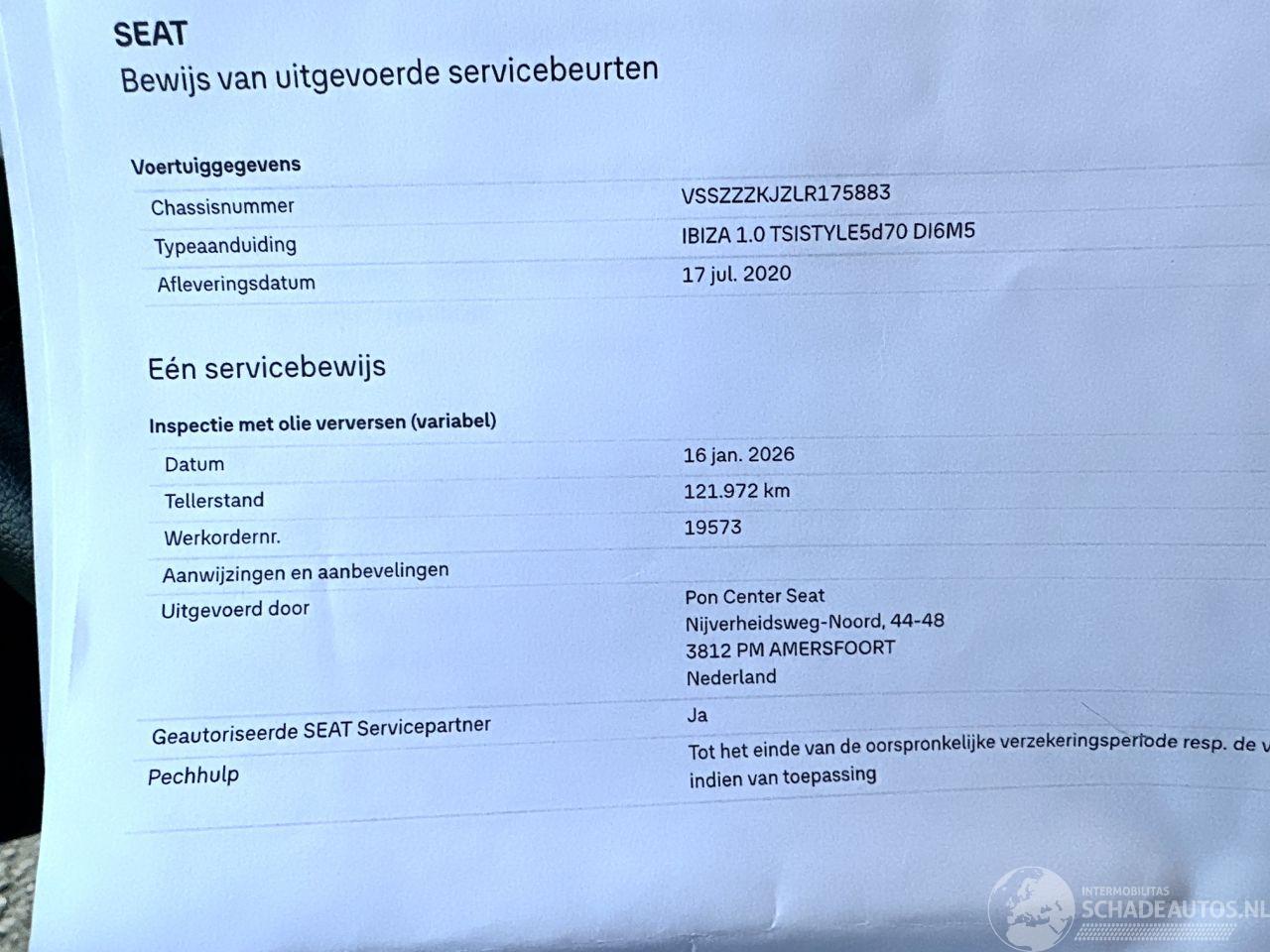 Bomvolle SEAT IBIZA 1.0 TSI 70KW/95PK STYLE BUSINESS INTENSE 5DRS - org NL auto + NAP + boekjes + 1x sleutel op afstandbediening erbij - NAVI - FRONT ASSIST - ACHTERUITRIJ CAMERA - DAB - CLIMA - CRUISE - NAP - PDC V+A - APPLE CARPLAY + Android - privacy glass - start/stop systeem - licht + regensensor + dimmende binnenspiegel - Touchscreen scherm + multimedia + 2x usb punten Apple + aux + stuurbediening - elektr ramen voor (niet achter) - zeer luxe uitgevoerd