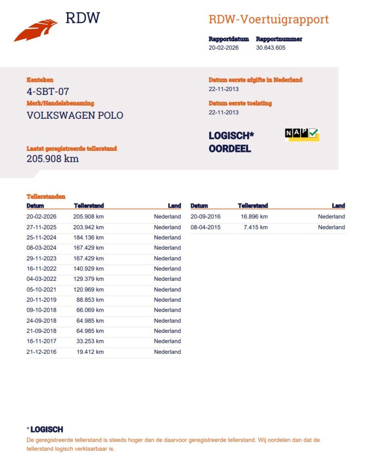 Verificación del kilometraje (NAP)