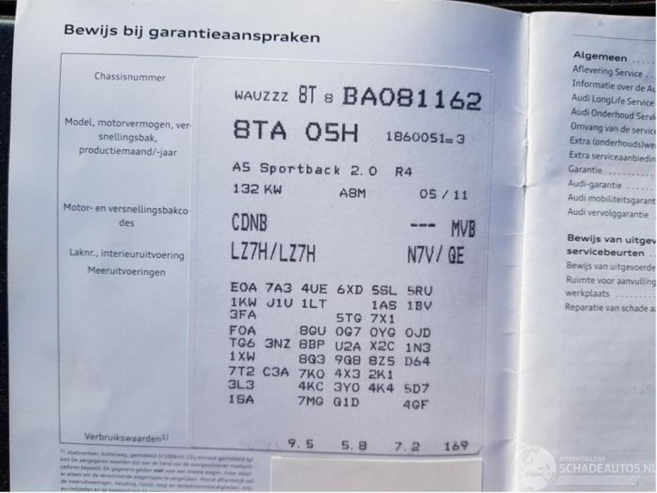 Modelo: 50 A5 Sportback (8TA), Liftback, 2009 / 2017 2.0 TFSI 16V