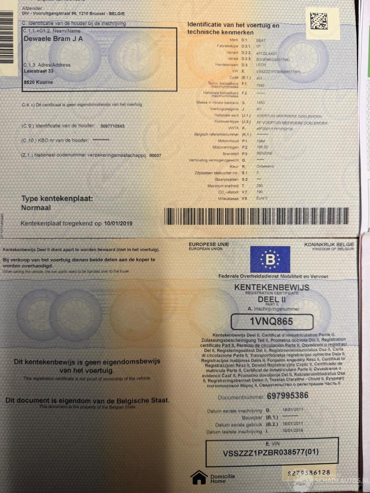 Keuring Na Ongeval (in België) / Kontrolle nach Unfall (im Belgien)