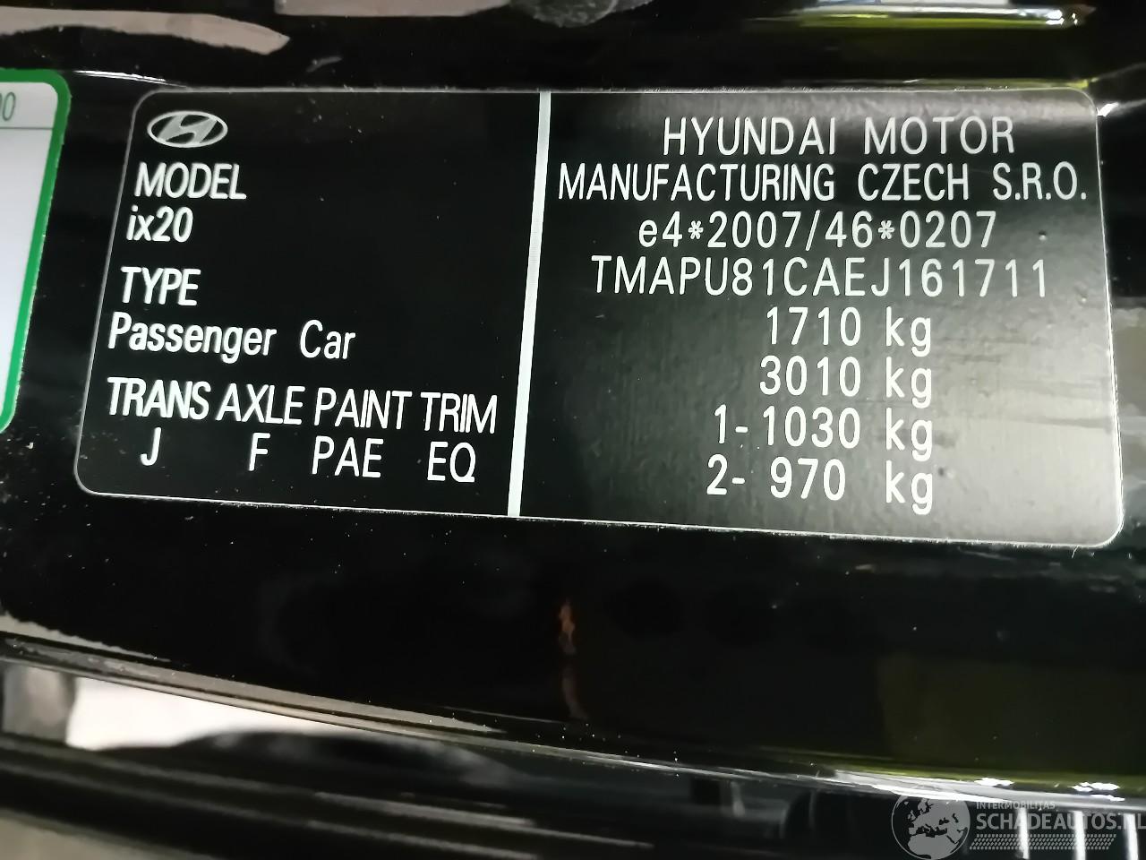 Malli: IX20  IX20 (JC) SUV 1.4i 16V (G4FA) [66kW] (11-2010/07-2019)