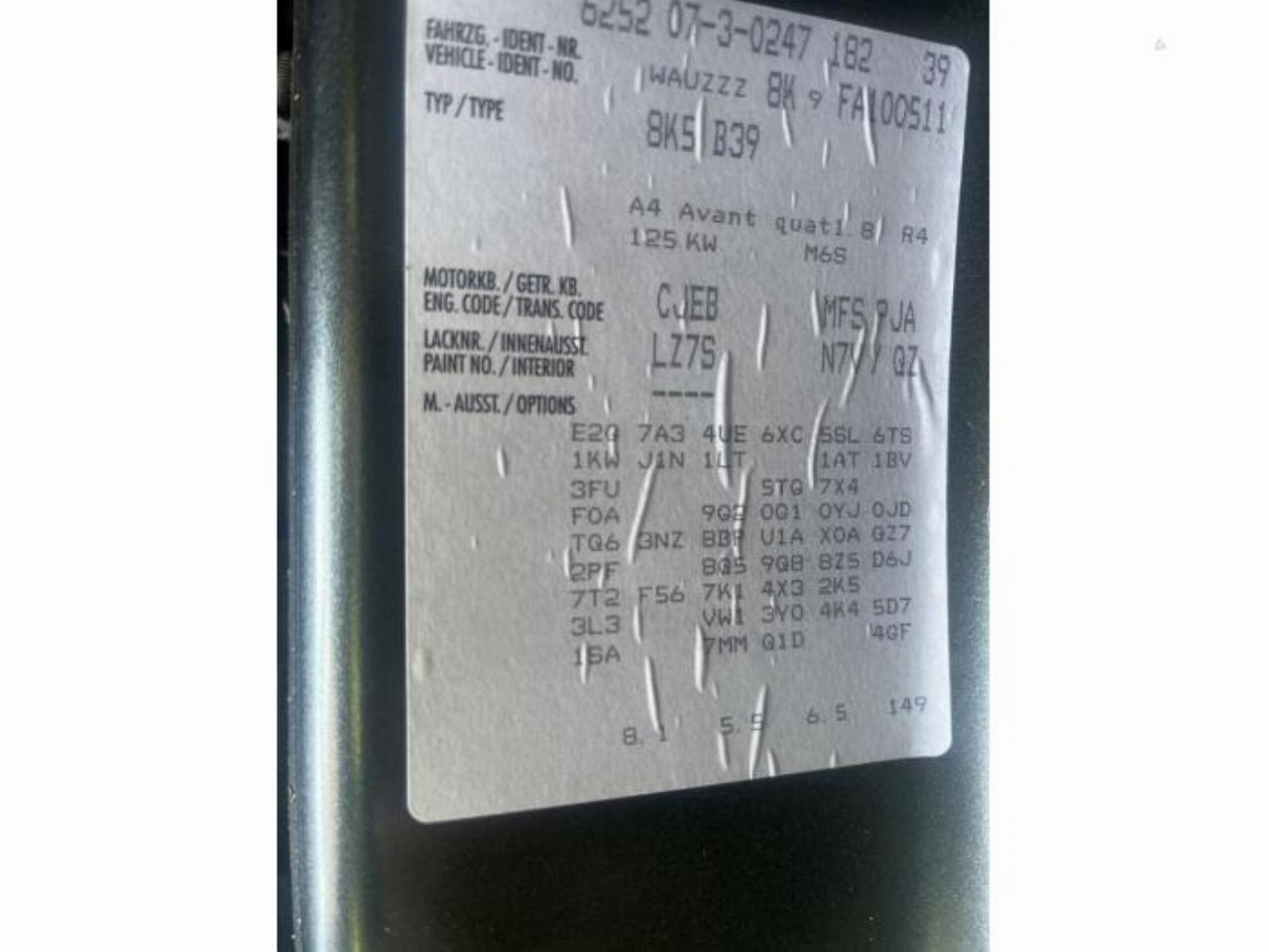 Malli: A4 A4 Avant (B8), Combi, 2007 / 2015 1.8 TFSI 16V Quattro