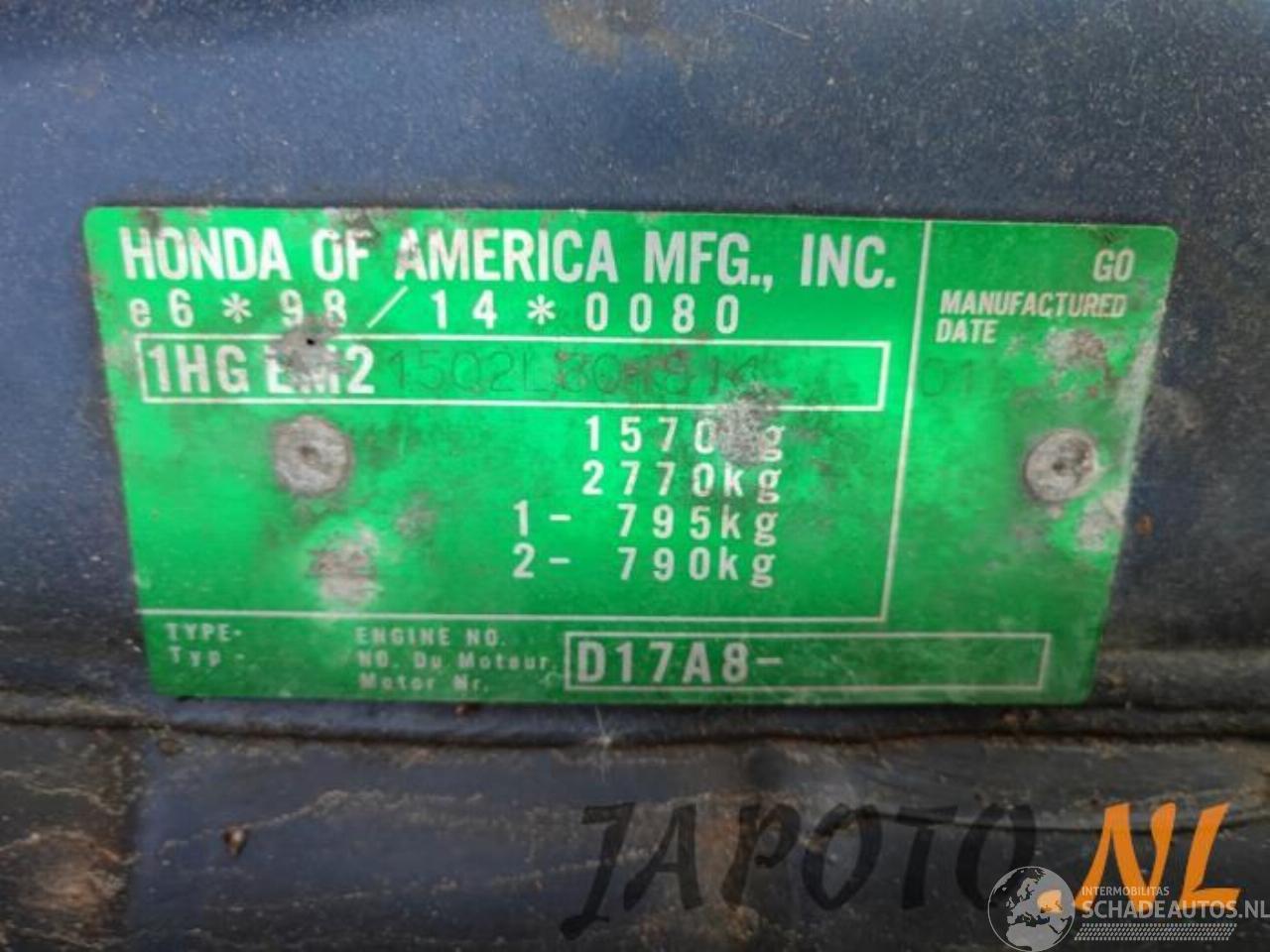 Malli: CIVIC Civic (EM), Coupe, 2001 / 2005 1.7 16V ES VTEC