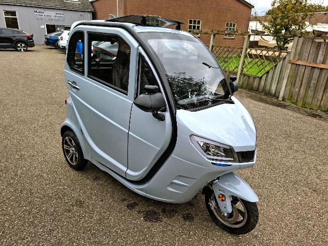 Achteruitrijcamera Centrale deurvergrendeling Elektrisch bedienbare ramen voor LED verlichting Lichtmetalen velgen Panoramadak Sportstoelen Zonnedak Snelheid: 45 km/u (in Nederland mag u hiermee op 50 km/u wegen rijden) • Actieradius: Tot 60 km • Oplaadtijd: 5-6 uur • Motorvermogen: 2200 watt Veilig en comfortabel: De draaibare bestuurdersstoel zorgt ervoor dat het instappen gemakkelijk is zelfs voor mensen die slecht ter been zijn. • Ruimte voor twee personen: De brede achterbank biedt ruimte voor een passagier en extra opbergruimte voor uw aankopen.