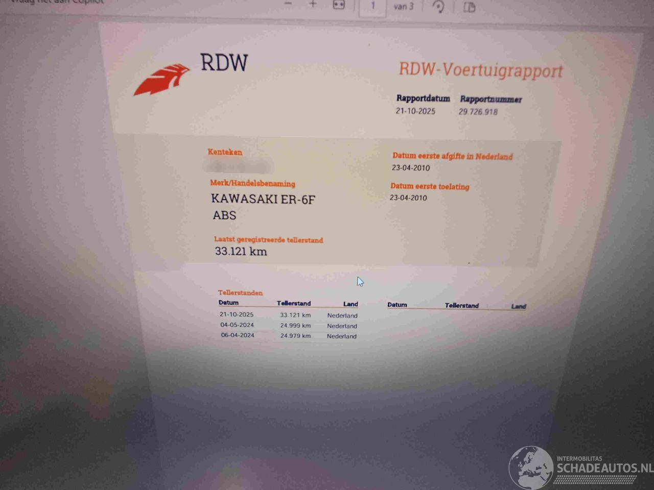 dommages KAWASAKI KAWASAKI ER - 6 F € 1.650
