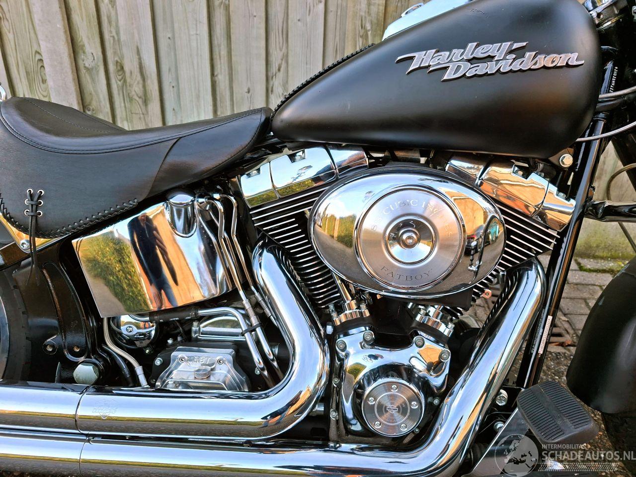 Harley Davidson FLSTF Fat Boy uit 2001 in matzwarte uitvoering met krachtige 1450cc motorblok. Voorzien van Vance & Hines uitlaatsysteem