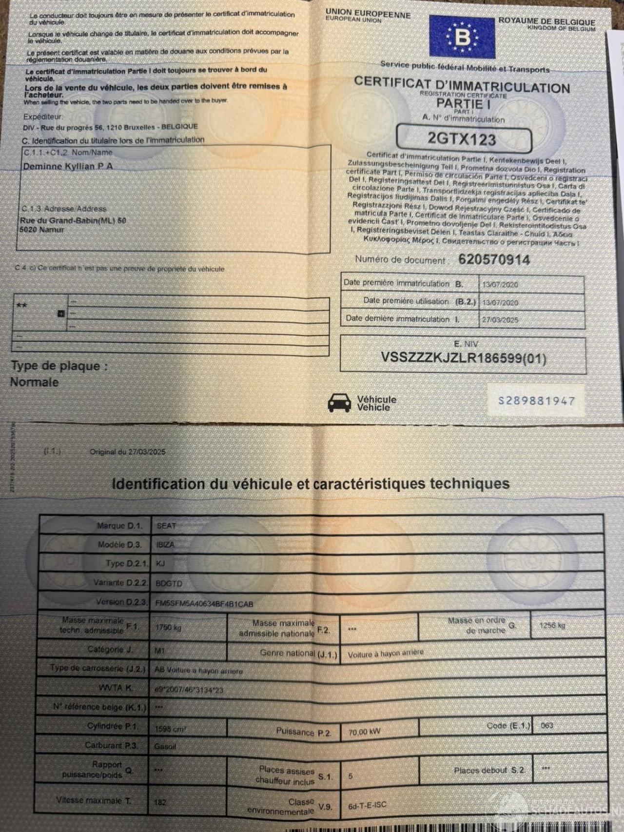 Keuring Na Ongeval (in België) / Kontrolle nach Unfall (im Belgien)
