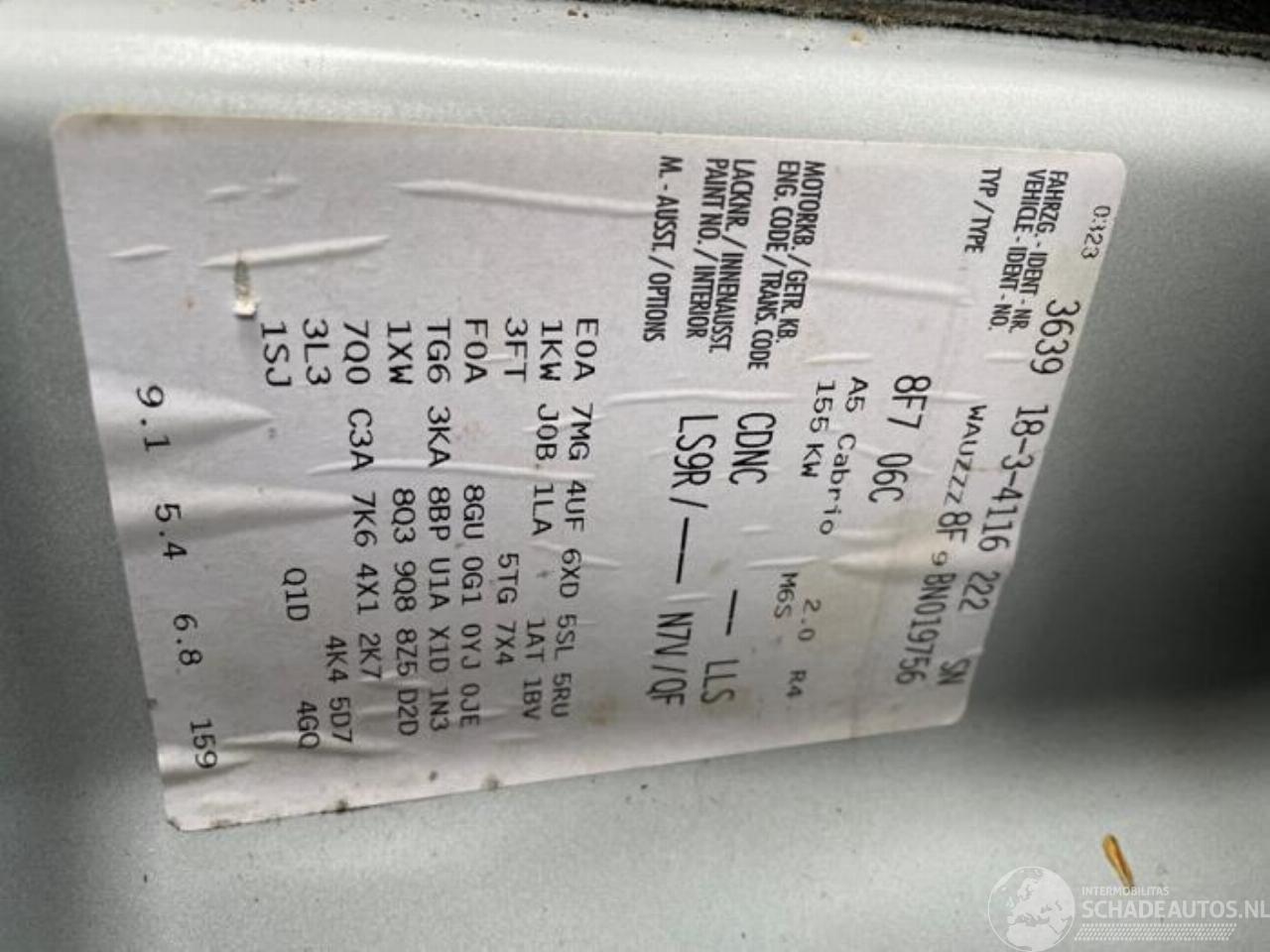 Modello: A5 A5 Cabrio (8F7), Cabrio, 2009 / 2017 2.0 TFSI 16V