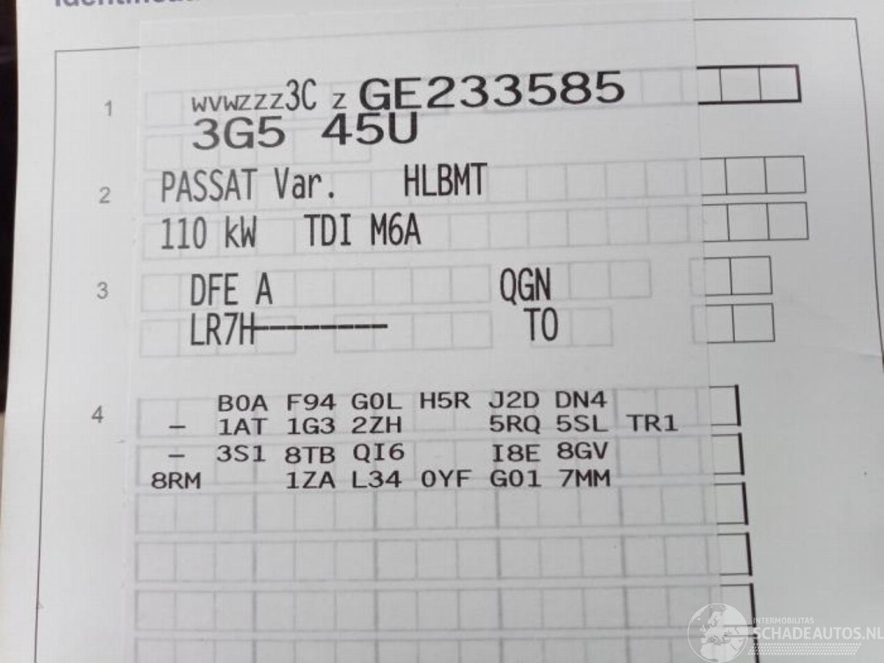 Modello: PASSAT Passat Variant (3G5), Combi, 2014 / 2024 2.0 TDI 16V 150
