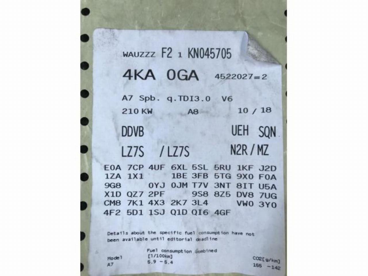 Model: A7 A7 Sportback (4KA), Liftback, 2017 3.0 V6 24V 50 TDI Mild Hybrid Quattro