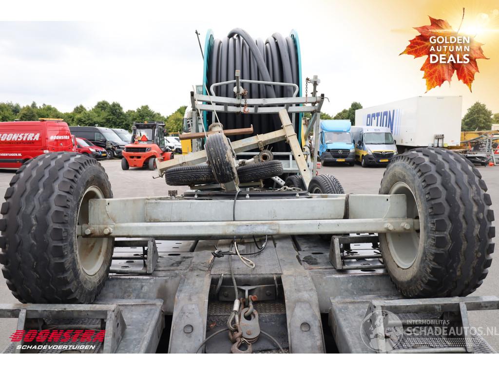 De beregeningshaspel is tijdens het rijden losgeraakt van de trekhaak