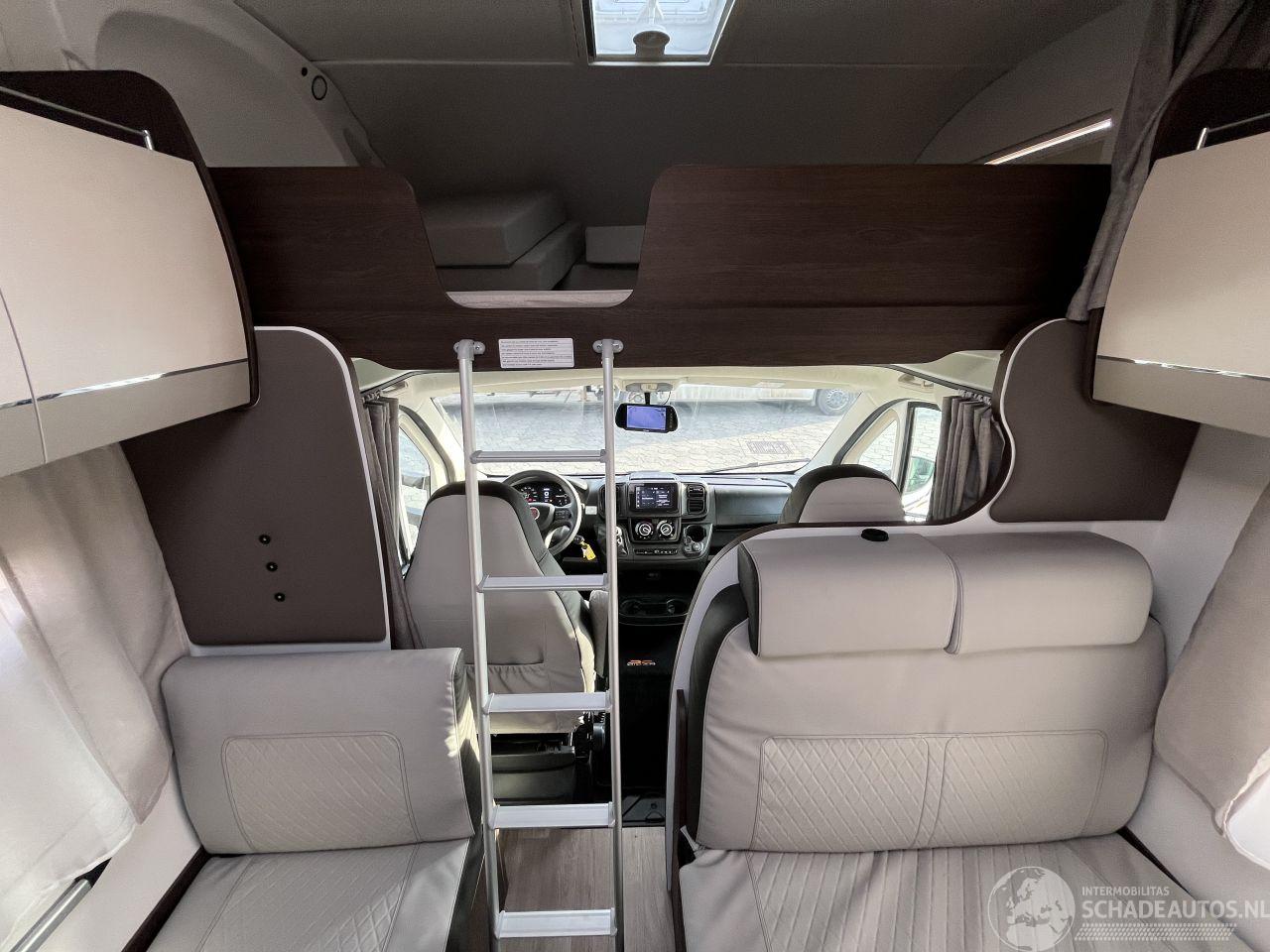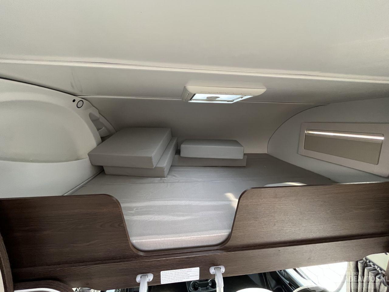 7 goedgekeurde zitplaatsen en 7 slaapplaatsen. Indeling: Voorzien van een ruim alkoofbed boven de cabine (155x200 cm) een stapelbed achterin (80x210 cm) en ombouwbare eetzitgroepen.