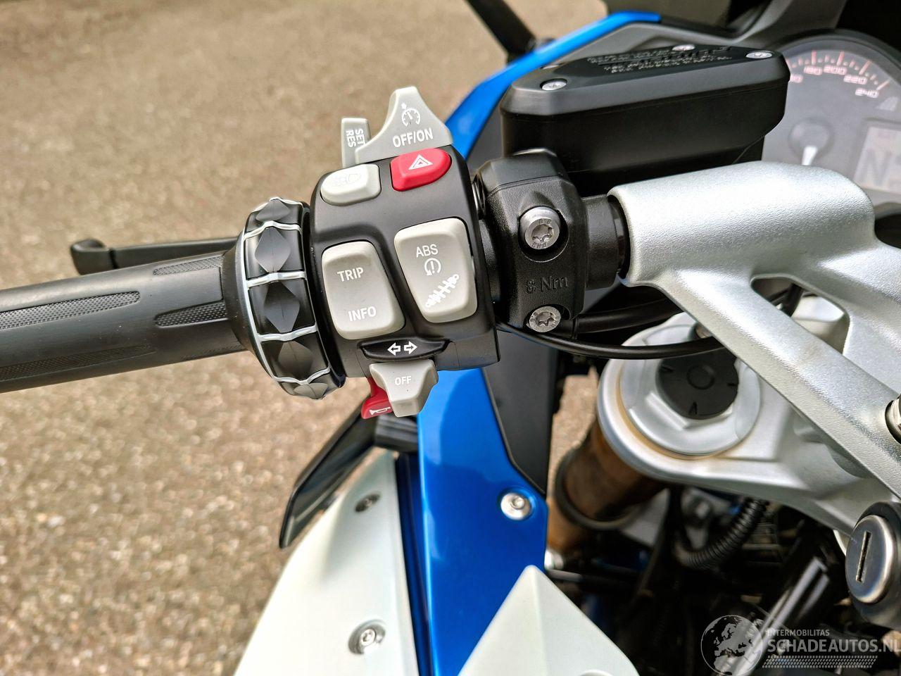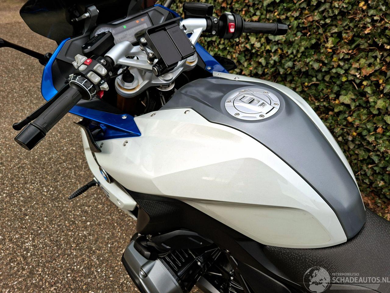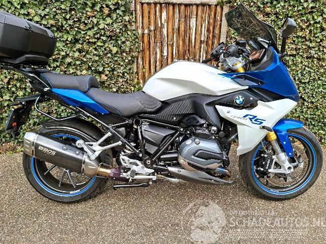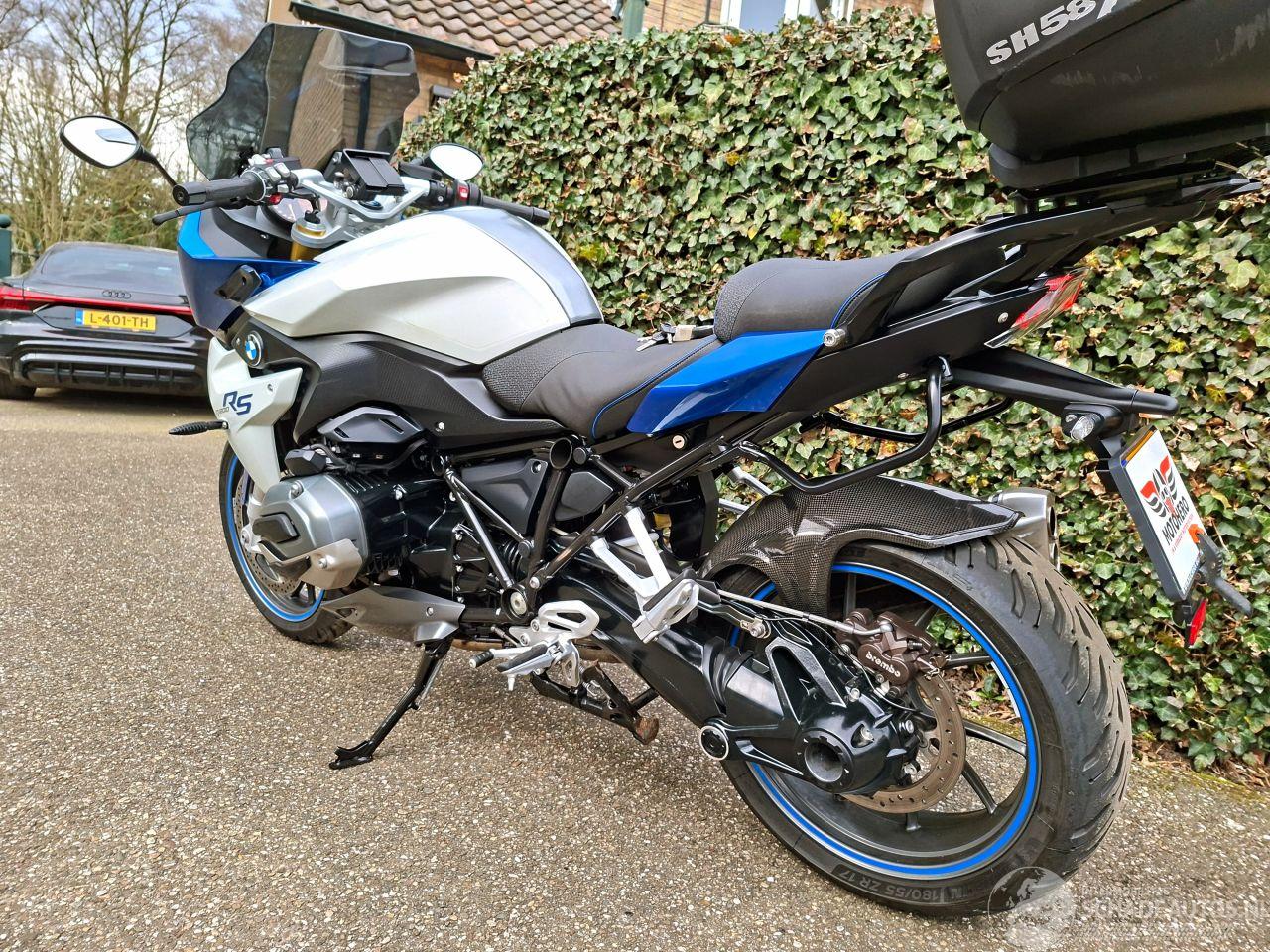 Deze BMW R 1200 RS uit 2015 is een krachtige 1200cc sporttourer met het kenmerkende boxerblok en cardanaandrijving. De blauw-witte uitvoering met Bos performance uitlaat