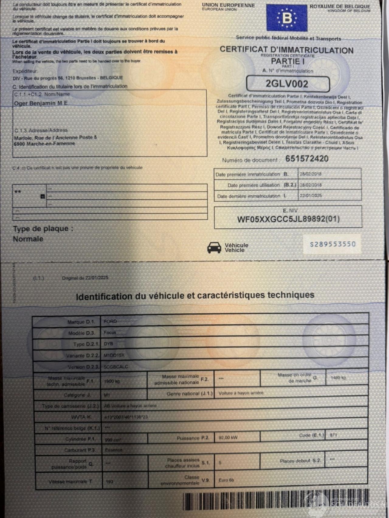 Reg. Certificate(I+II)=OK, C.O.C=OK, CarPass=OK, Technical Control required